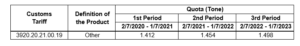 Turkey has stated that the distribution, management and application and principles and procedures of the usage of the product under the tariff positions 3920.20.21.00.19 within the scope of the Communiqué regarding Surveillance Practice in Import (Communiqué No: 2020/2) published in the Official Gazette dated 5 May 2020 and numbered 31118 will be applied for the period and amounts given below: