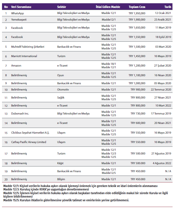 Bu rehber, 28 0cak 2023 tarihinde Kişisel Verileri Koruma Kurulu’nun 2021 yılı faaliyet raporunda yer alan veriler ve yayın tarihi itibarıyla Kişisel Verileri Koruma Kurulu’nun resmi internet sitesinde yayınlanan kararlara dayanılarak hazırlanmış olup; 12 Nisan 2023 tarihinde 2022 yıllı faaliyet raporu yayınlanmış olduğu için güncellenerek tekrardan dikkatlerinize sunulmaktadır.